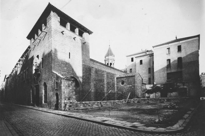 Arribareu a un espai central rodejat per l’edifici de l’Institut d’Estudis Catalans, la seu de la Reial Acadèmia de Medicina de Catalunya (Fig.3), i la porta que dona al carrer del Carme.
